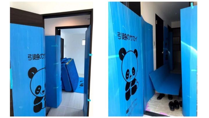 他們還會把房間墻面和地板,也保護起來,最大程度地避免家具剮蹭。